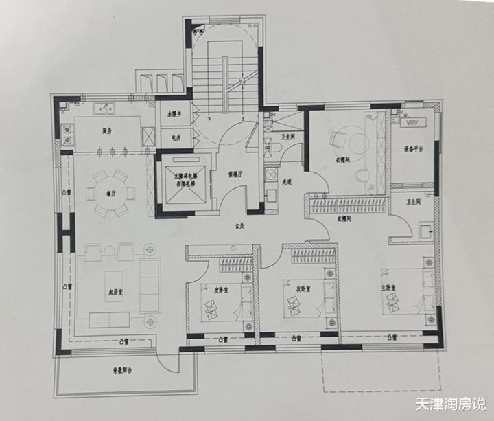 已交付的梅江壹号院299平米四室三卫户型,是真正的大平层。