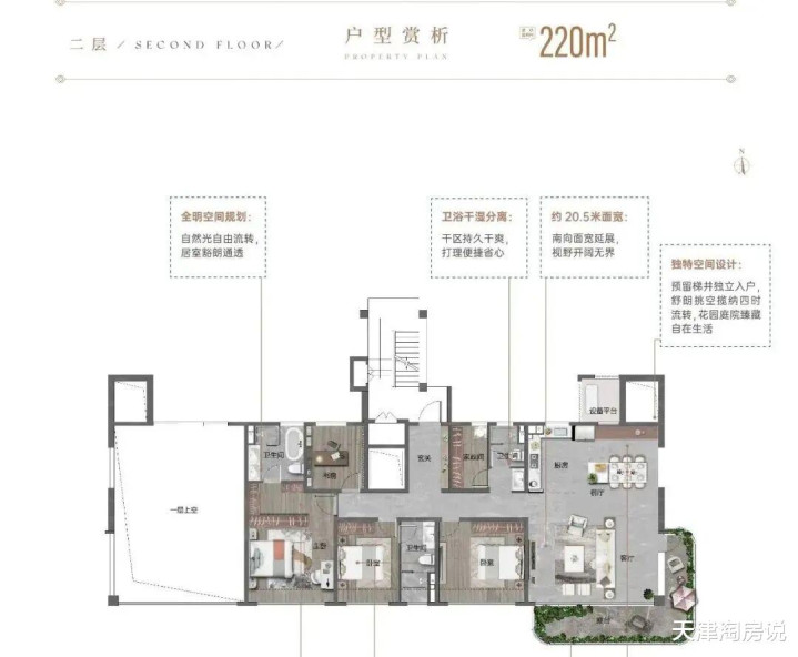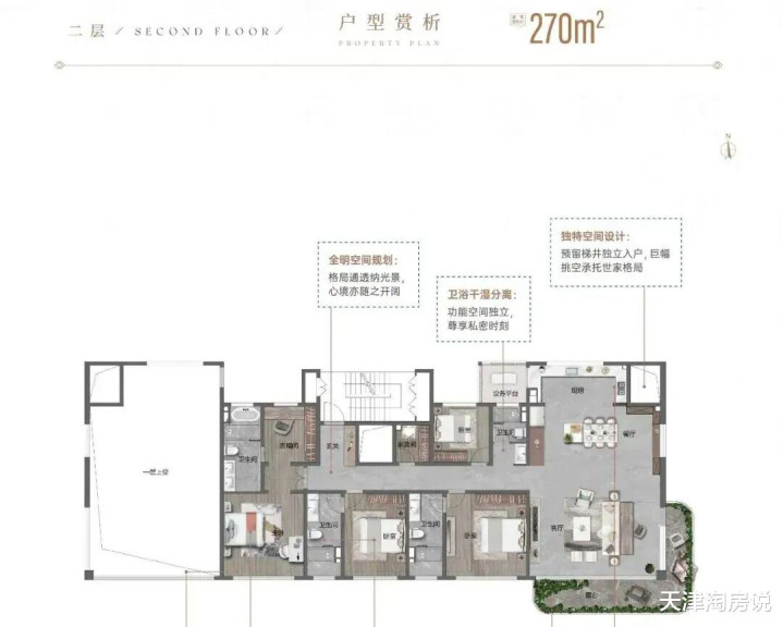 这样既有大平层的南向大面宽,同时又有别墅的生活体验。