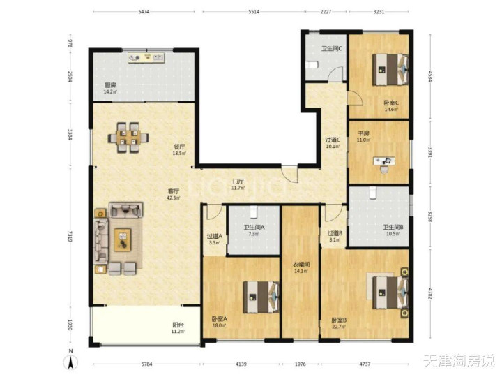 L型咬合户型,赠送的挑空相当于白给的实用面积。